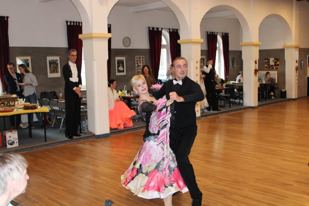 Von Platz 3 traute sich das andere Moerser Paar Thorsten Mattheus und Elke Mattheus-Staack nicht zu träumen. In der Masters IIIS Klasse hatten sich unter anderem Stella und Ralf Lämmermaier angekündigt , die für den niederländischen Verein Dansstudio Paul & Cynthia an den Start gehen und 2023 in Mailand zum zweiten Mal Weltmeister ihrer Klasse geworden waren – weitere sensationelle Ergebnisse der beiden sind z.B. die Endrundenteilnahme beim wichtigsten Turnier der Welt in Blackpool. Stella und Ralf sind mit den Moersern befreundet und und kamen natürlich zuverlässig in das für Tänzer, die die Weltbühne kennen, kleine Moerser Clubheim. Das war schon großes Kino die zwei tanzen zu sehen und so konnten Stella und Ralf am Ende auch den Titel des Sparkasse am Niederrhein Pokals souverän und mit allen Einsen verteidigen. Träumte da nicht noch wer? Stimmt, im Schatten der ganz Großen tanzte das Moerser Paar Thorsten und Elke ein sensationelles Turnier und errang den größten Erfolg ihrer bisherigen Tanzkarriere und stand am Ende neben den Weltmeistern auf dem Treppchen. Herzlichen Glückwunsch!