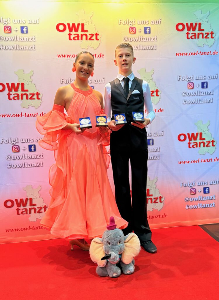 Bei „OWL tanzt“ waren Luis Robin te Paß und Mina Sieske sehr erfolgreich! So gab es in der Jug B Lat am 09.11.25 einen Platz 5 und mit einigen Einsen, Zweien und Dreien in der Wertung – da war noch mehr drin! In der Jun II B Latein gab es in der Endrunde sowohl am 08.11. als auch am 09.11. das gleiche Ergebnis!